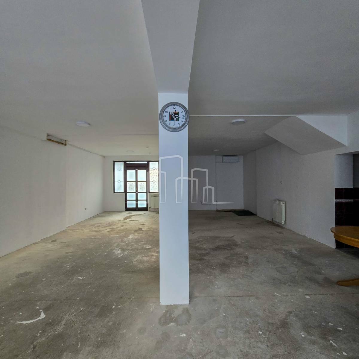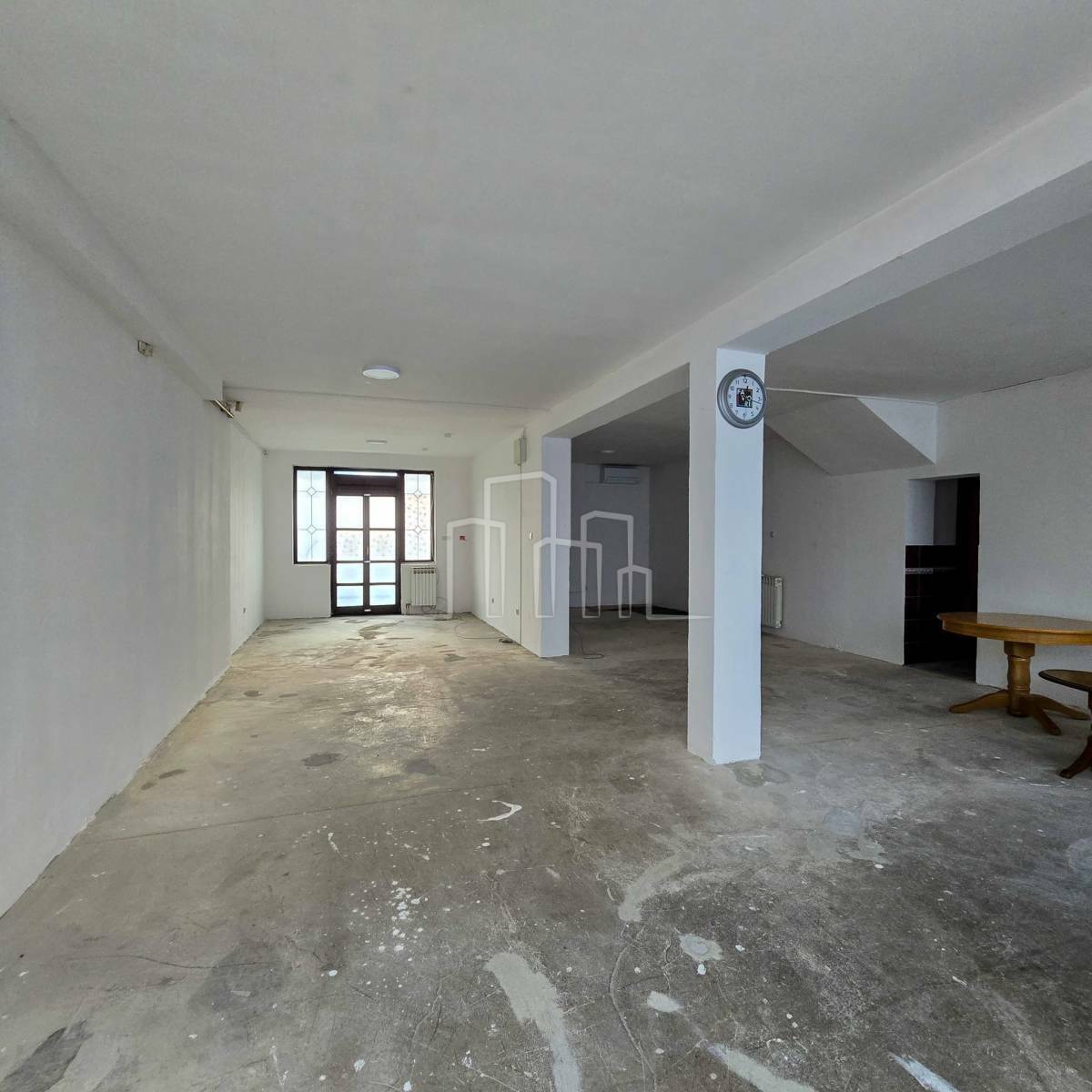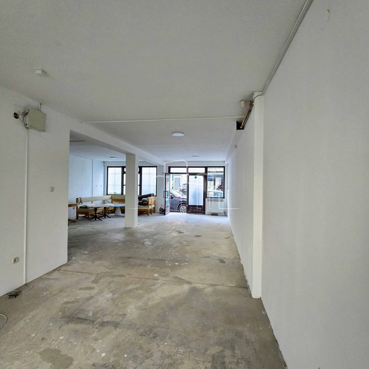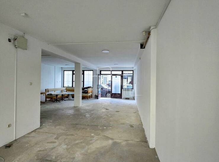Poslovni prostor od 90m2 sastoji se od jedne velike prostorije i mokrog čvora. Pod beton, izlog prema glavnoj ulici.