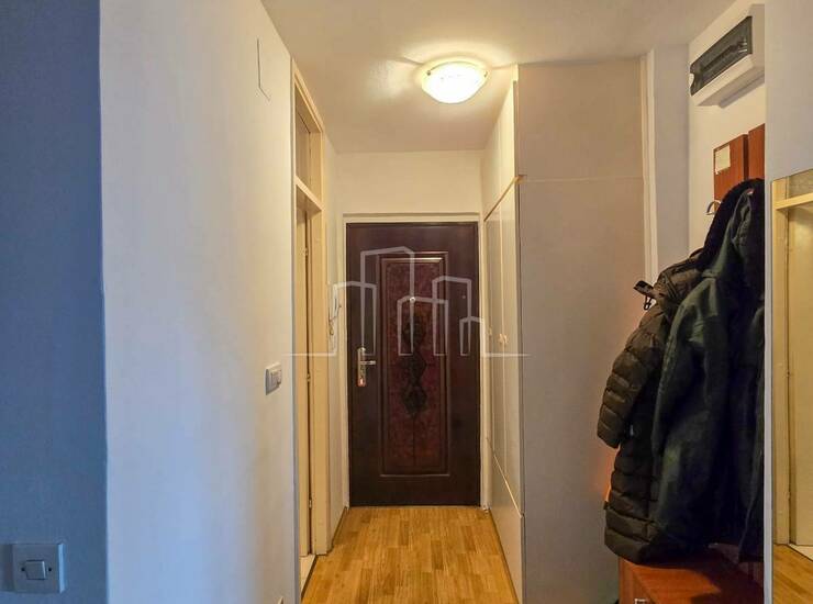 Površina od 43m2 se sastoji od hodnika, dnevnog boravka, male spavaće sobe, kuhinje sa trpezarijom i kupatila.