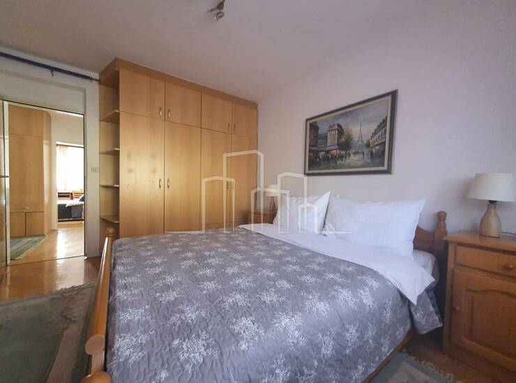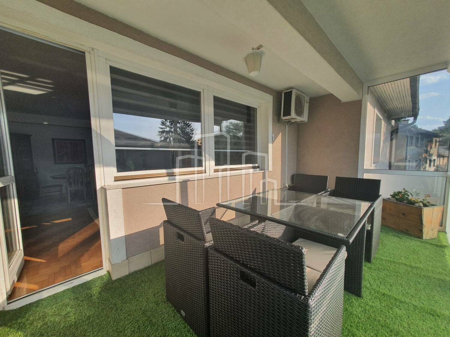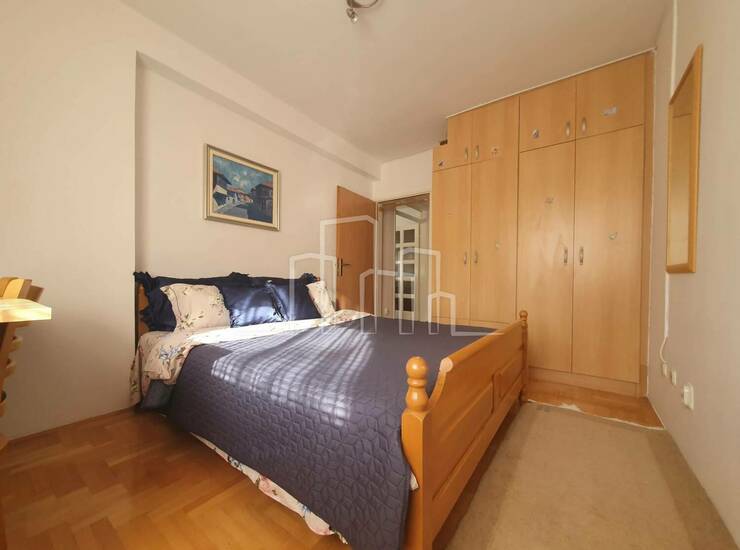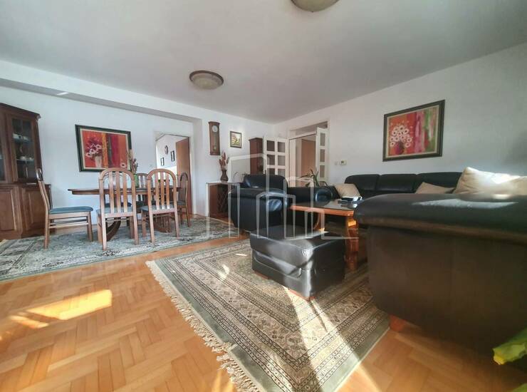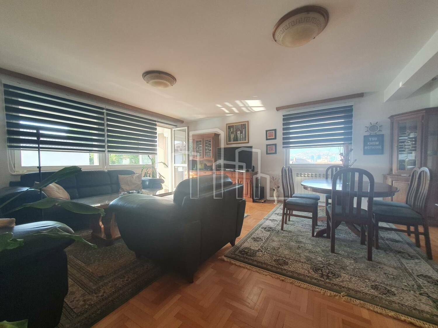Površinu 100 m2 čine veliki dnevni boravak s trpezarijom i izlazom na terasu, tri spavaće spavaće, velika kuhinja, dva kupatila, komforan ulazni hodnik i još jedan balkon. Stan je kompletno renoviran, opremljen potrebnim namještajem i kućanskim aparatima, sunčan, i sa lijepim pogledom s terase. Na raspolaganju je i garaža za vaše vozilo.