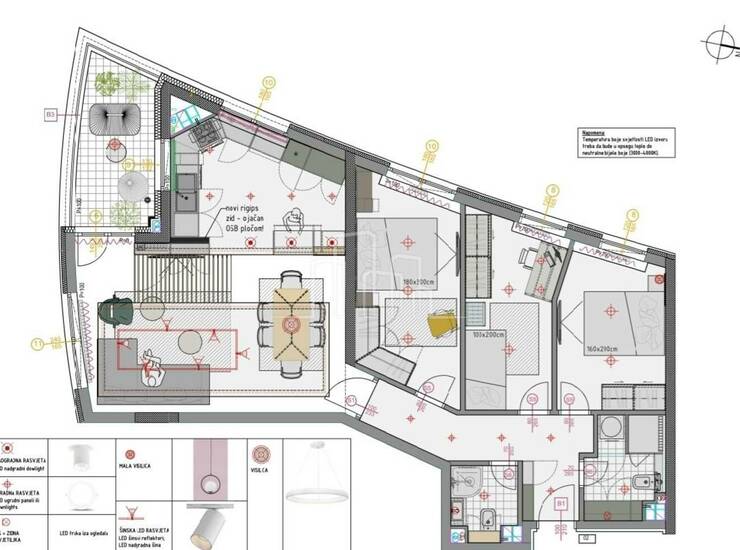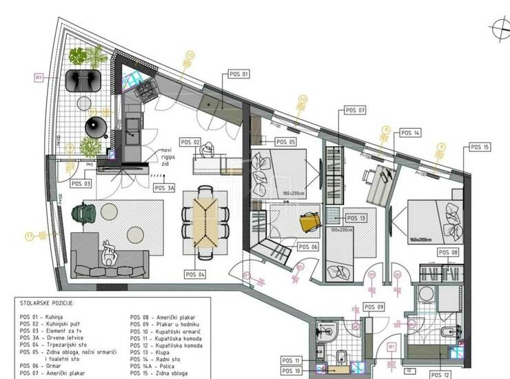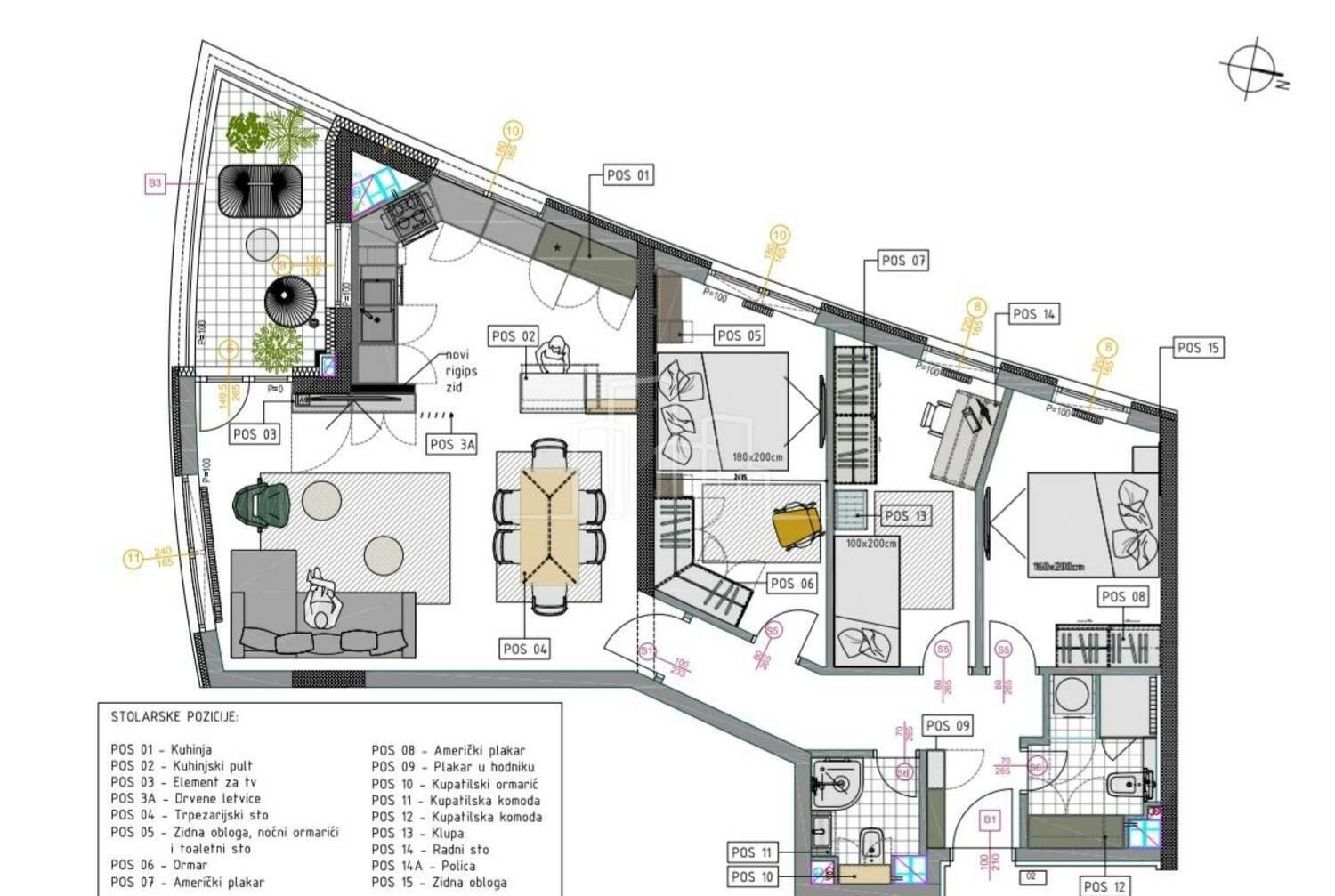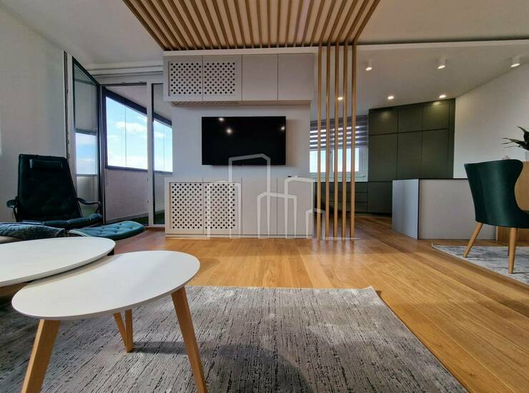 Jugozapadna orijentacija, sa tri spavaće sobe i velikim dnevnim boravkom te pogledom na čitav grad. Ima svoja parking mjesta u garaži.