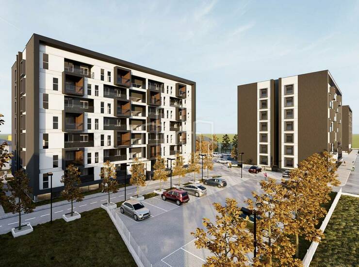 Naselje u kojem se nalaze predmetni stanovi će se sastojat iz 3 zgrade,sa preko 200 stanova i sklopu svakog objekta se nalaze garažna parking mjesta kao i vanjska privatna parking mjesta. Sve etaže su povezane liftom i stepeništem.
