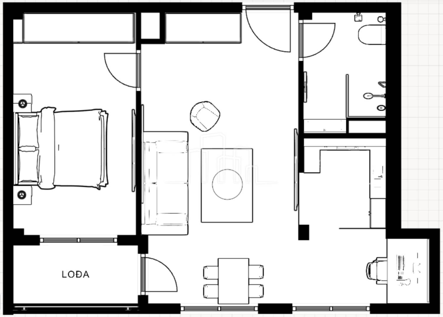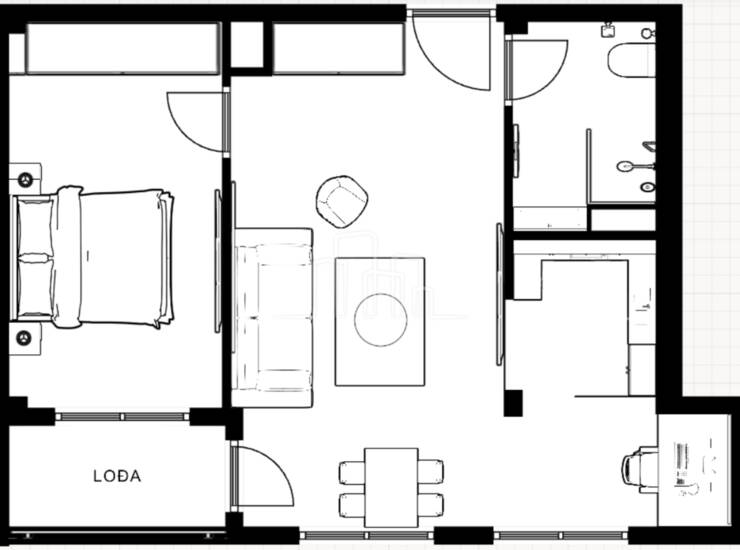 Stan sa ponude dvosoban A 41.90m2 sastoji se od ulaznog hodnika, dnevne sobe sa izdvojenom kuhinjom, spavaće sobe , kupatila i balkona.