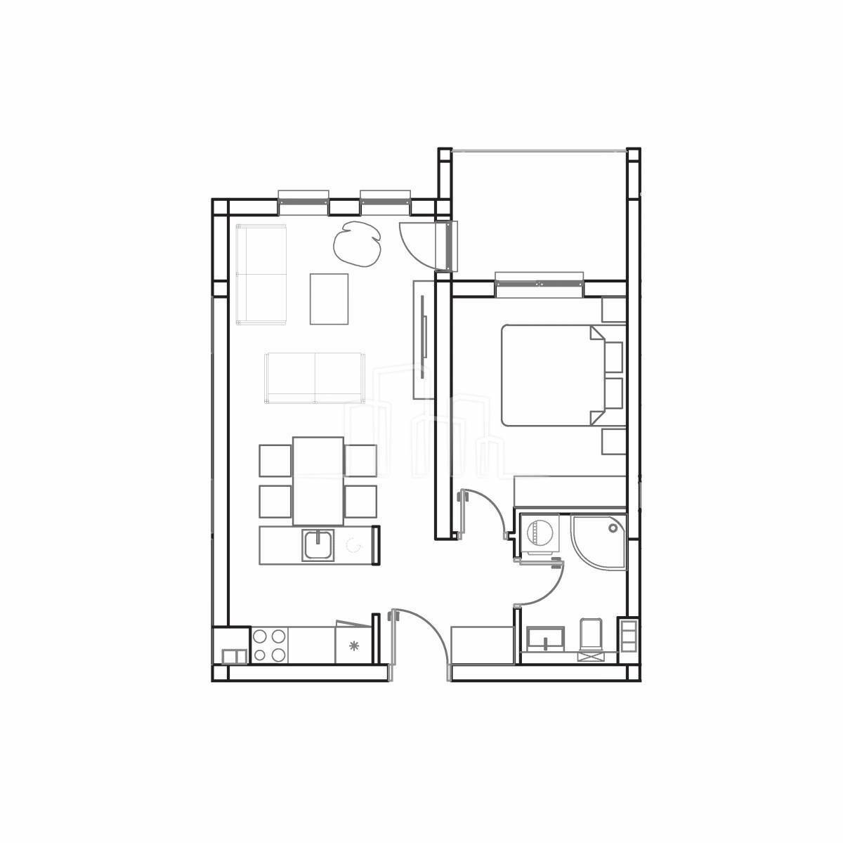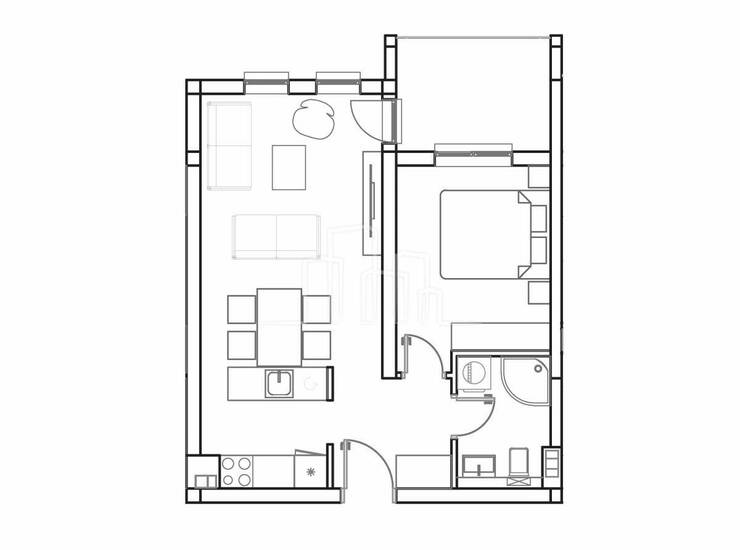 Stanovi sa ponude sa jednom spavaćom od 42 i 44 kvadrata sastoje se od ulaznog hodnika, dnevne sobe sa trpezarijom i kuhinjom , spavaće sobe, balkona i kupatila.