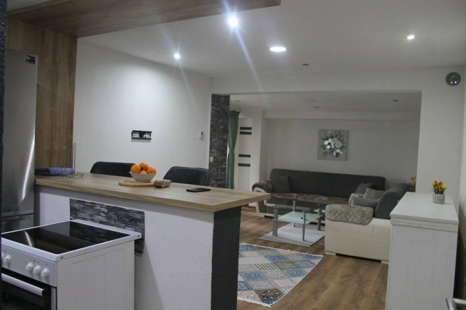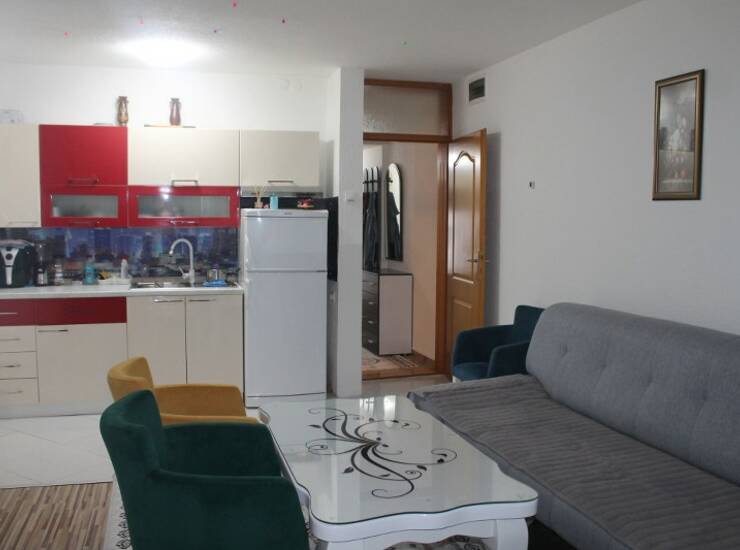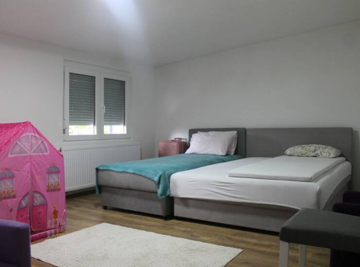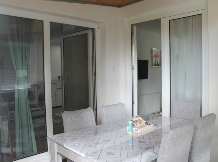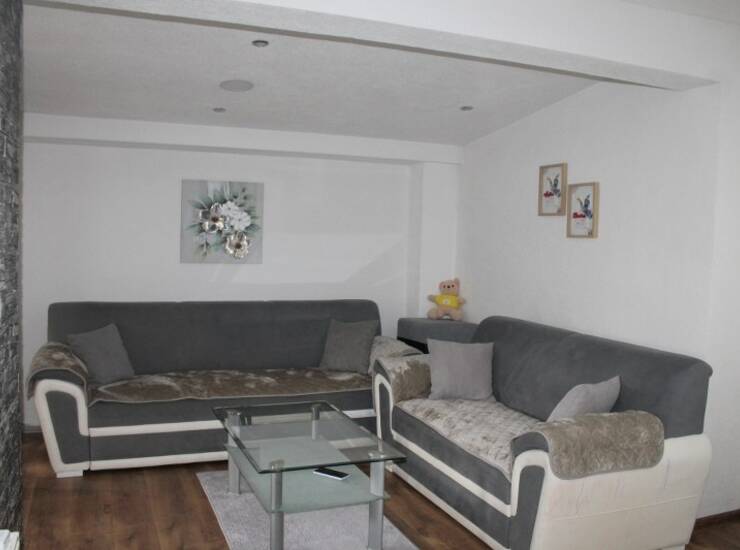 Prodaje se objekat sa odvojena stanovanja u neposrednoj blizini gradske bolnice u Cazinu ulica 517. Oslobodilačke brigade. Objekat je prizemlje + sprat sa pomoćnim sadržajima kojeg čine dva odvojena stanovanja od 130 m2 stambene površine i dodatnih 50 m2 u prizemlju objekta - kotlovnica u kojoj je smještena peć na pelet, dodatne ostave, mjesto za vešeraj koje se može po potrebi pretvoriti u stanovanje i zidana roštilj pecara. Sa prednje strane objekta se nalazi dvorište u kojem su 2 dodatne vanjske ostave prostora cca 40 m2. Svaki stan ima svoj zaseban ulaz, svoje mjerilo trofazne struje i vode. Prvo je trosobno stanovanje kojeg čine: hodnik, kupatilo, dnevni boravak sa kuhinjom, dodatna trpezarija i dvije spavaće sobe. Drugo stanovanje je dvosobno a čine ga: hodnik, kupatilo, spavaća, kuhinja sa dnevnim boravkom iz kojeg se također moze pristupiti trpezariji i izlazu na balkon terasu koja je ograđena kovanom kapijom. Obezbjeđena su dva vlastita parking mjesta za svaki stan odvojeno od kojih je jedno natkriveno nadstrešnicom. Objekat je čvrste gradnje, sa vanjskom termoizolacionom fasadom, kvalitetnom PVC stolarijom i ugrađenim roletnama. Kompletno uređeno i namješteno sa pripadajućim uređajima i namještajem koji su uključeni u cijenu. Obezbjeđeno je centralno grijanje u oba stana, ugrađen klima uređaj i postavljen video nadzor na obje strane objekta. Objekat se nalazi u mirnom gradskom dijelu u kojem je omogućena kvalitetna komunikacija u centar grada, kompletna in