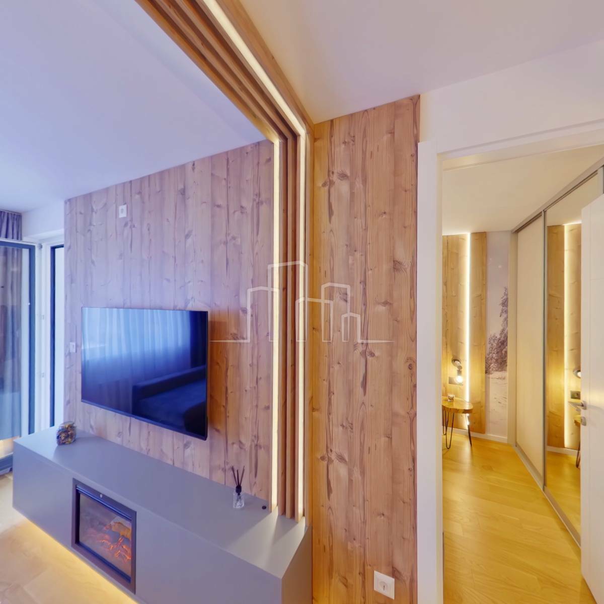 · Vanjska stolarija kombinacija Drvo-Alu sa duplom termopan zvučnom izolacijom i LOW-e staklima.