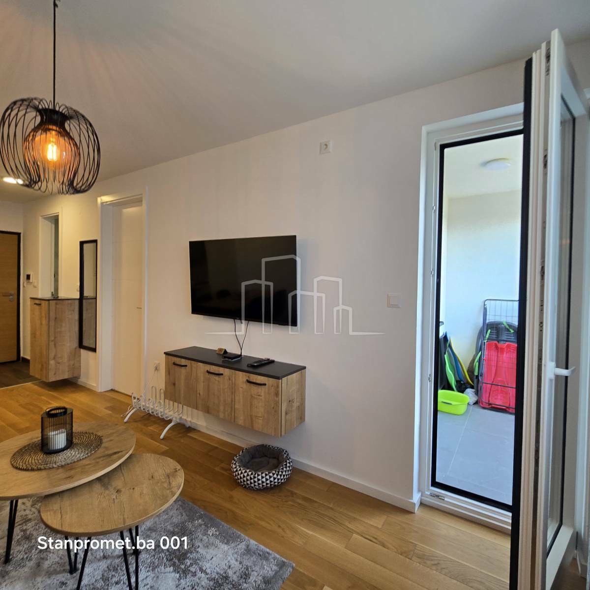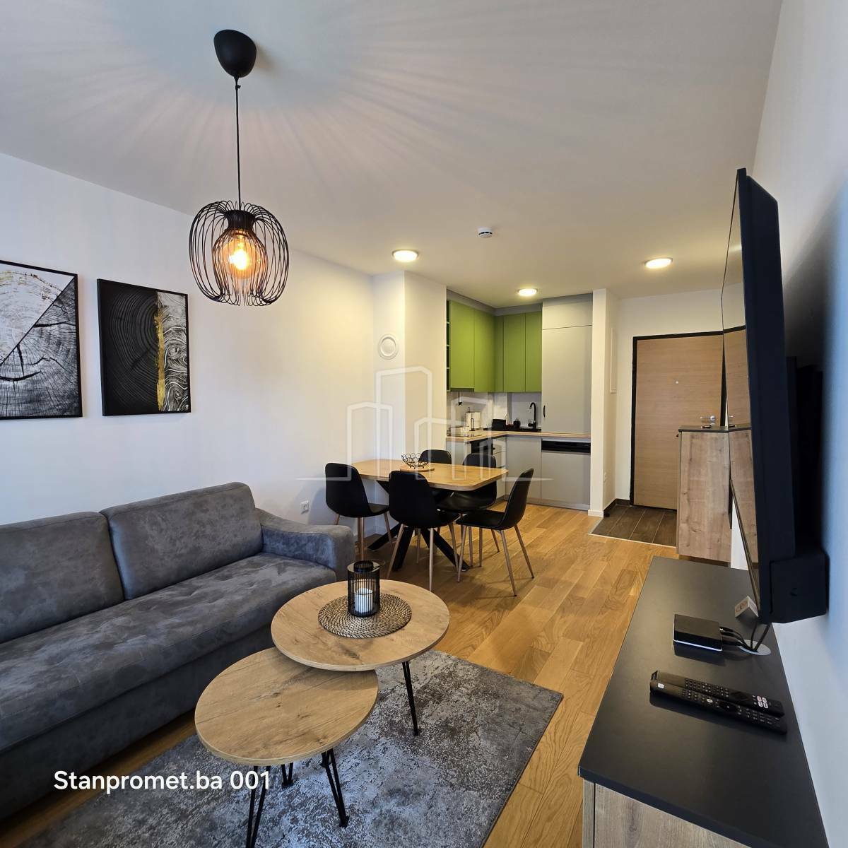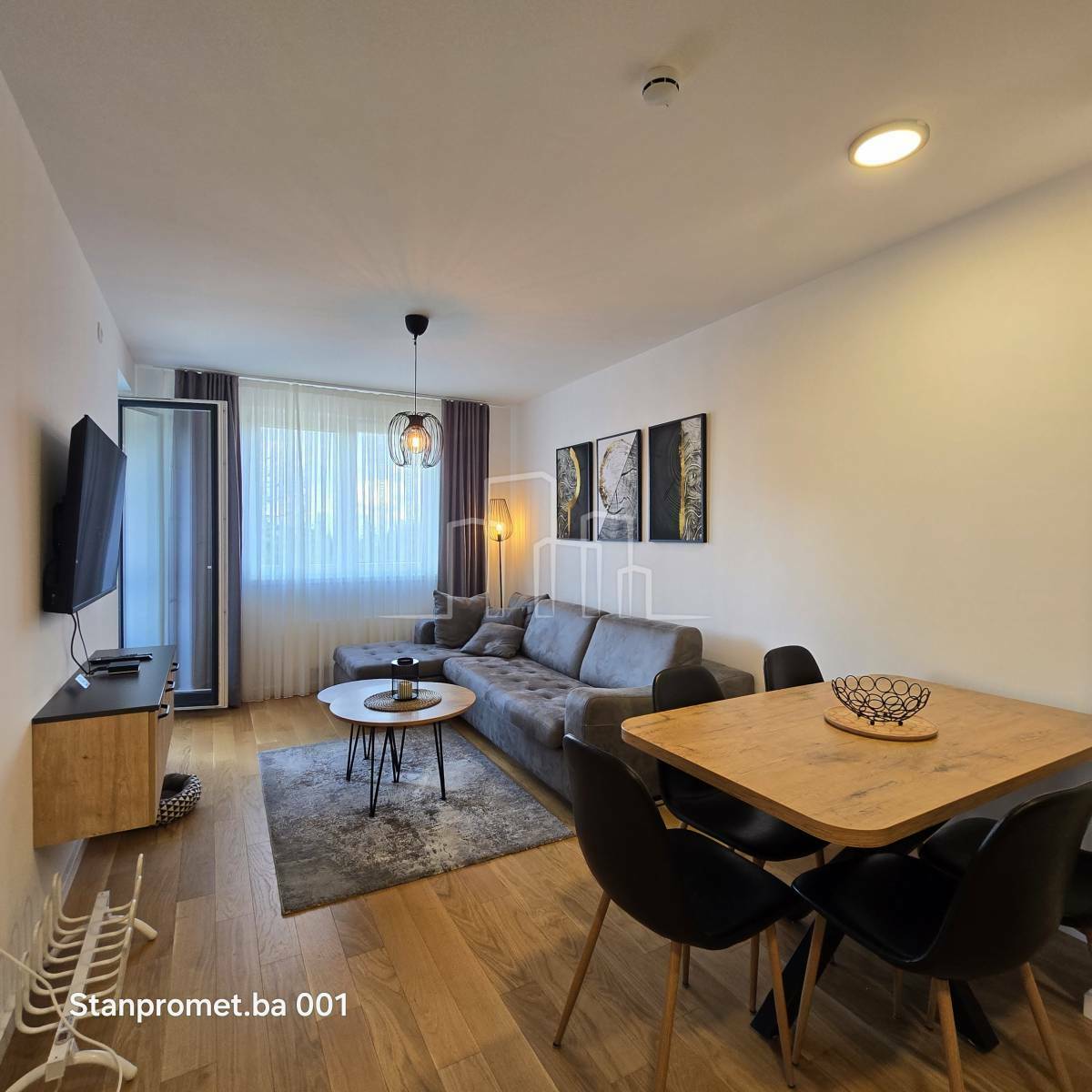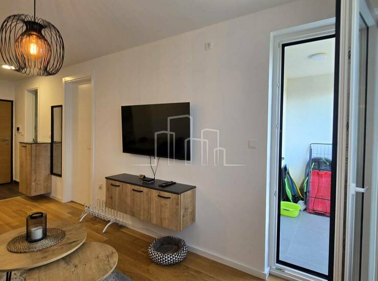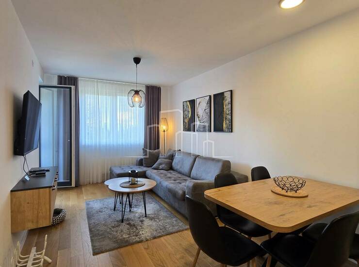 Površina 38 m² i sastoji se od ulaznog hodnika, kupatila, spavaće sobe, kuhinje, trpezarije i dnevnog boravka sa balkonom.