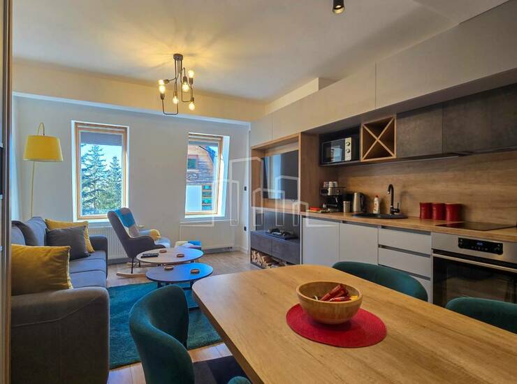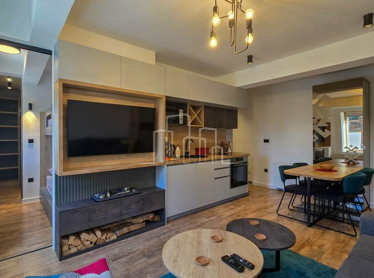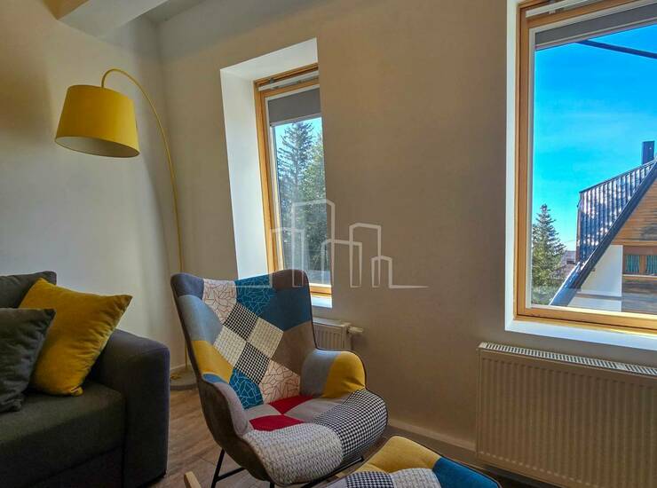 Apartman je površine 34m2 i nalazi se na 1.spratu objekta sa pripadajućim ski box-om skijašnicom.