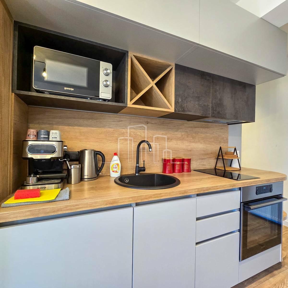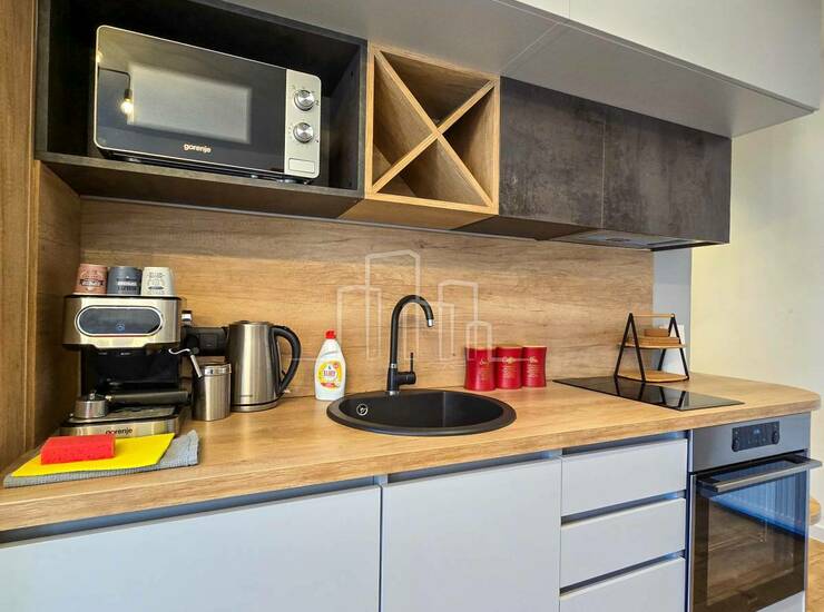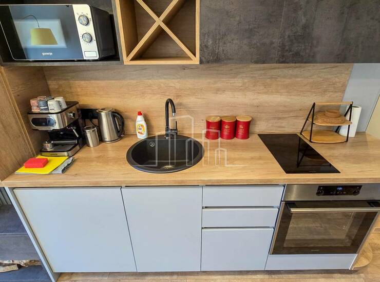Apartman se sastoji od ulaznog hodnika, dnevnog boravka sa kuhinjom i trpezarijom, dijela za spavanje sa dva kreveta, plakarima i kupatila.