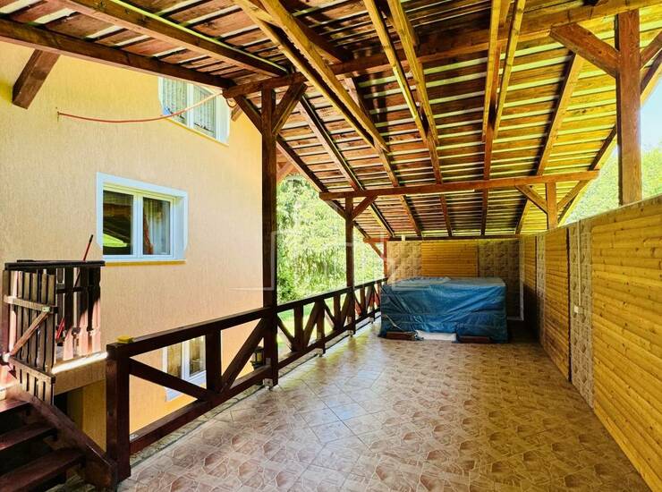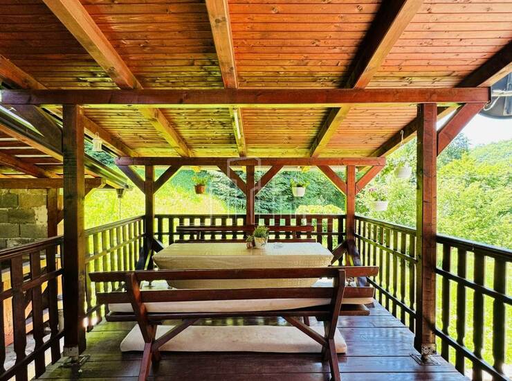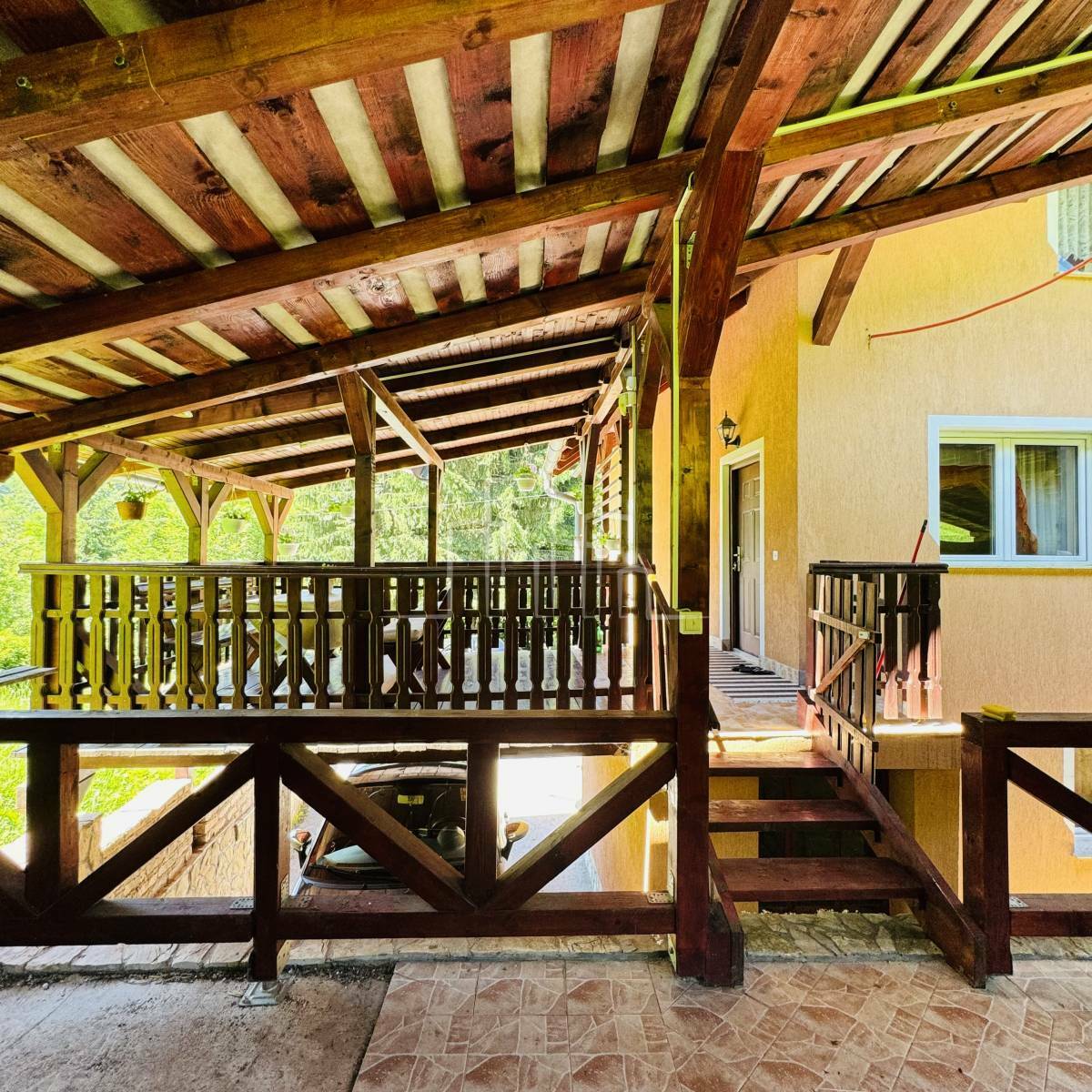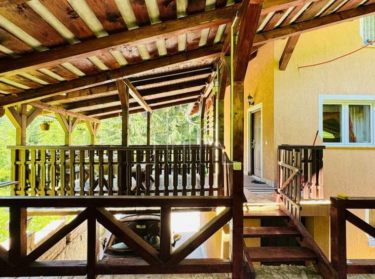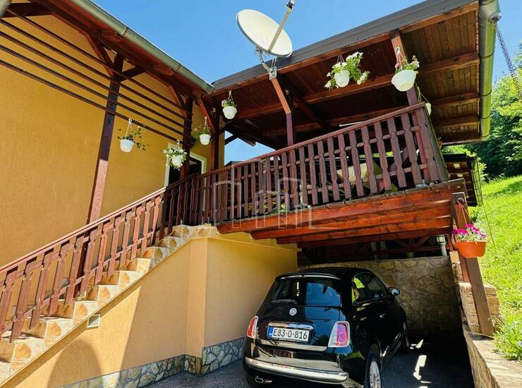 Kuća ima dvije natkrivene terase od čega jedna sa jaccuzzijem. Veliki broj drveća, uređeno zemljište, asfaltni prilaz, kapija na daljinsko upravljanje...
