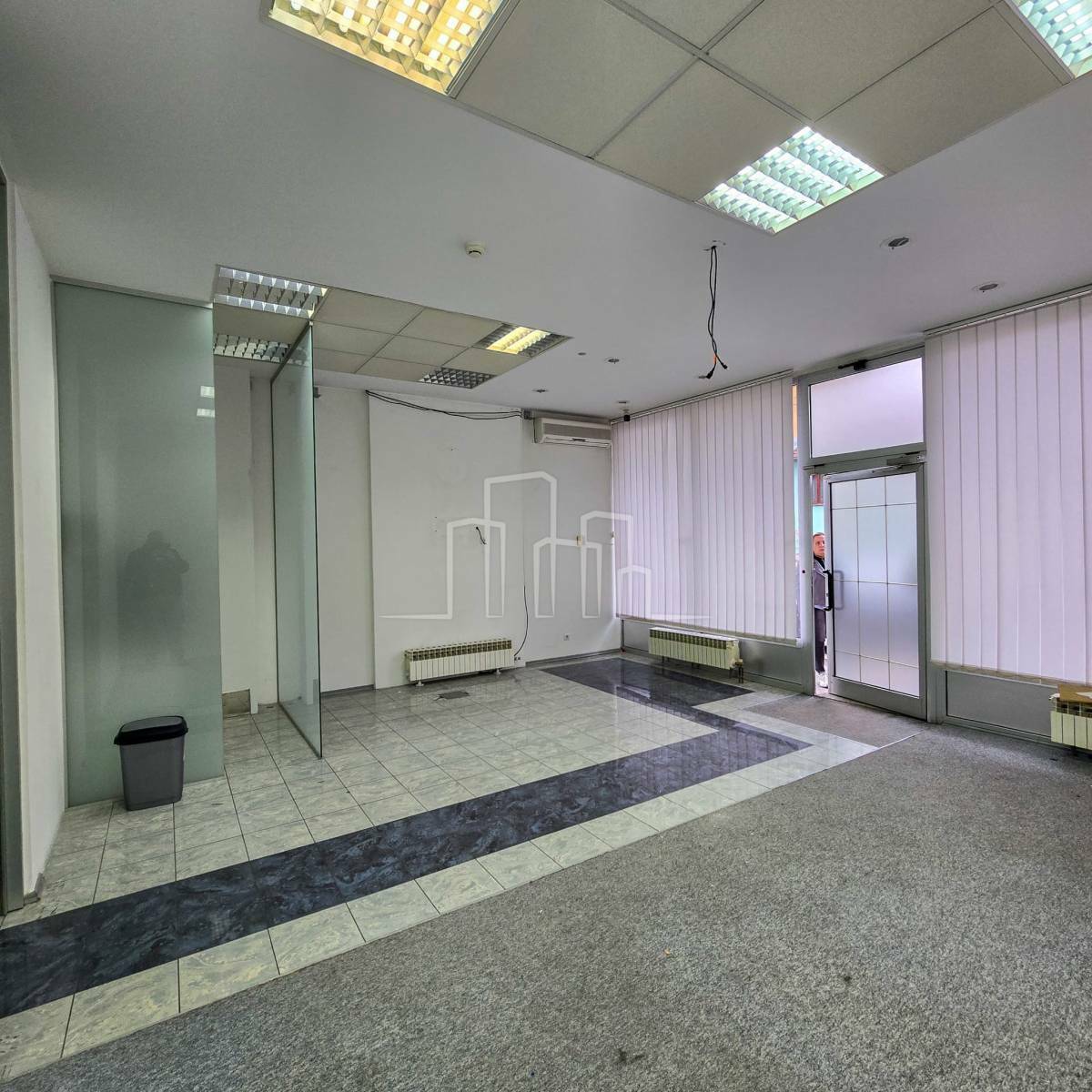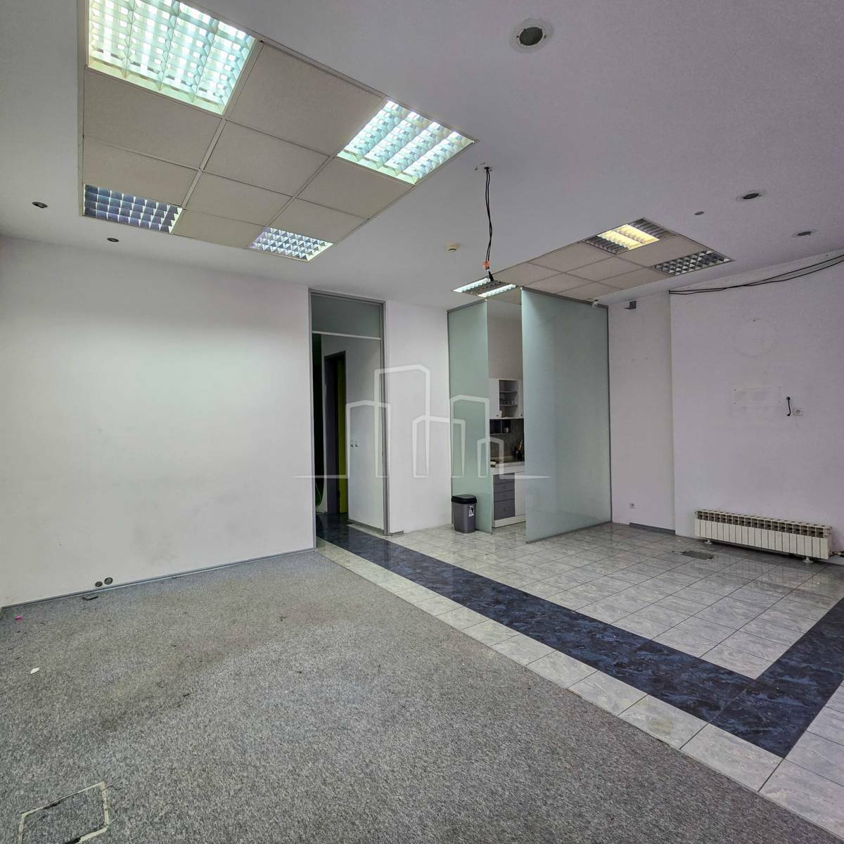 Poslovni prostor od 77m2 sastoji se od dvije velike i jedne male prostorije, izdvojene kuhinje te mokrog čvora. Pod laminat/keramika/itisoni, grijanje centralno plinsko etažno. Klimatizirano, videonadzor, alarmni sistem. Alu portali prema glavnoj ulici. Izdaje se nenamješten.