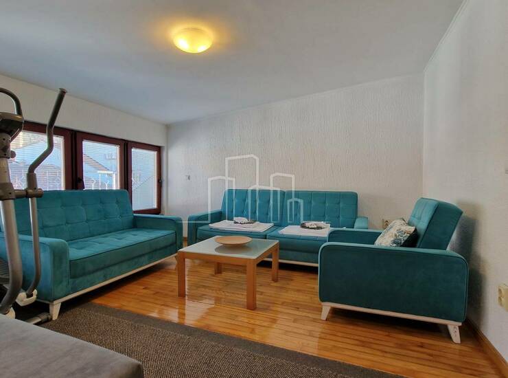 Stan čine ulazni hodnik, dvije spavaće sobe i kupatilo na donjoj, te dnevni boravak, kuhinja, trpezarija, spavaća soba i kupatilo na gornjoj etaži. Nekretnina se prodaje kao na slikama, te je useljiva uz kozmetičke prilagodbe. Stan je kompletno renoviran i namješten. Grijanje je etažno plinsko.