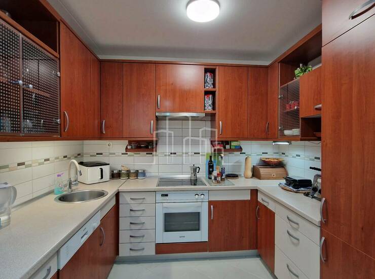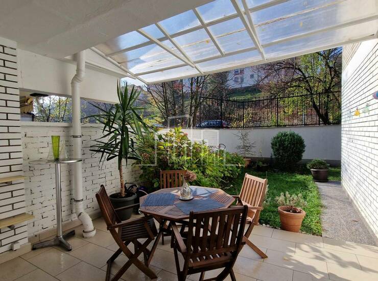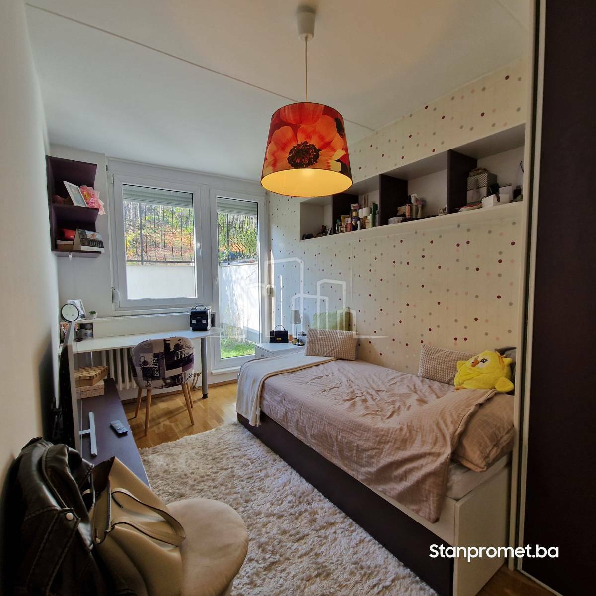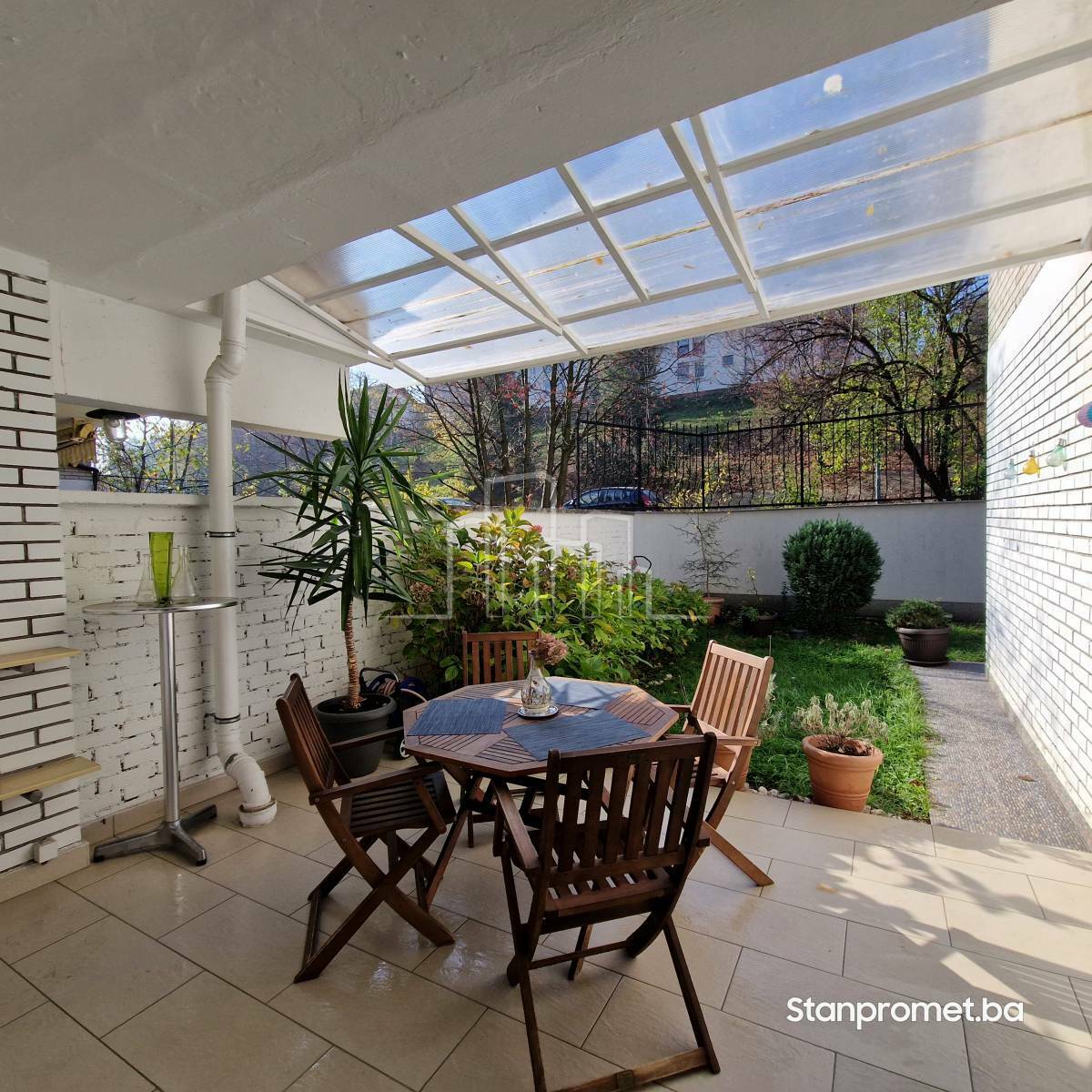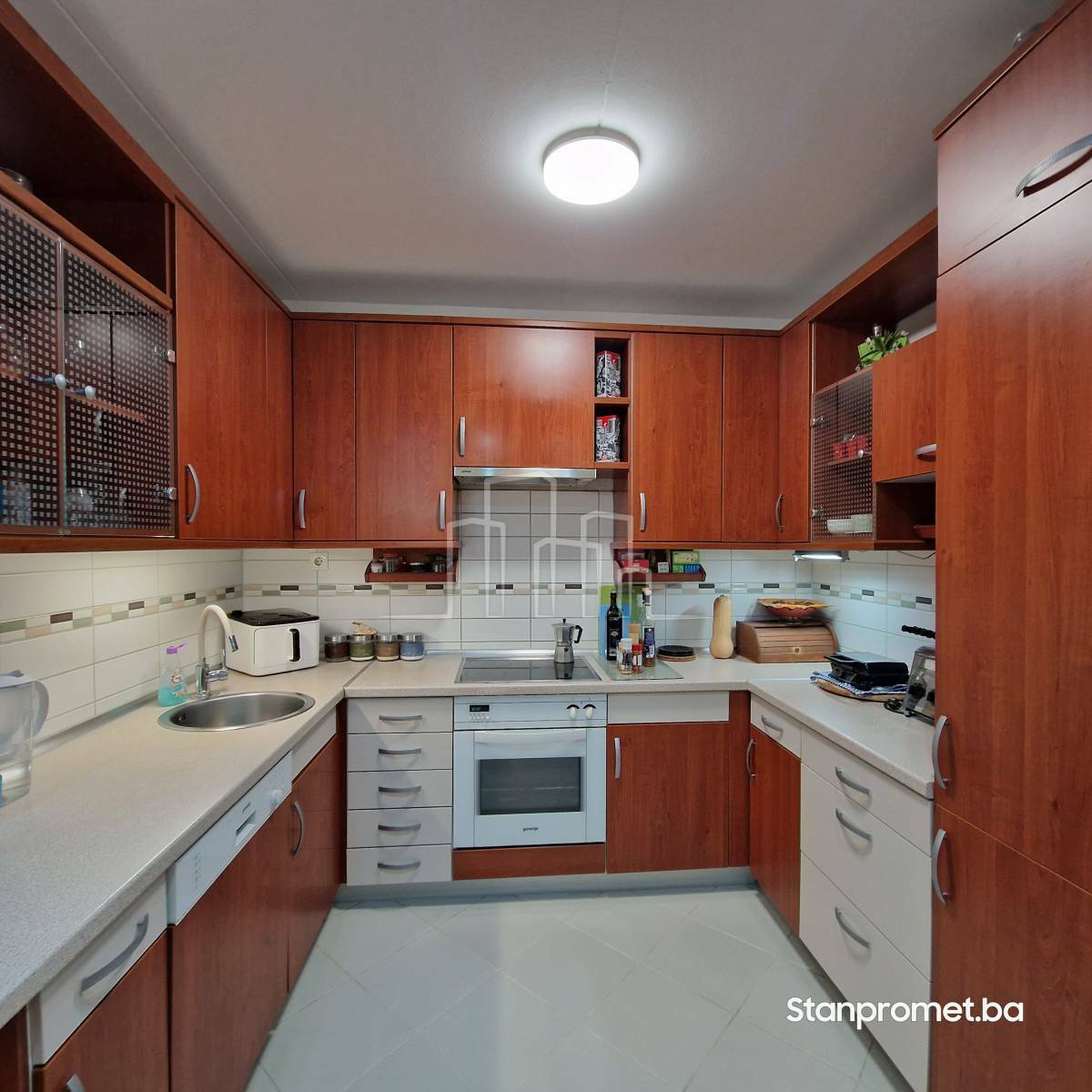 Nekretnina je smještena na 2. spratu zgrade sa liftom. Površinu 76 m2 čine dnevni boravak sa trpezarijom, kuhinja, tri spavaće sobe, ulazni hodnik, kupatilo i toalet. Gratis je bašta 64m2,sa dijelom popločan o terasom koja je natkrivena. Stan je u potpunosti renoviran i useljiv. Osvjetljen, prozračan i unikatan.