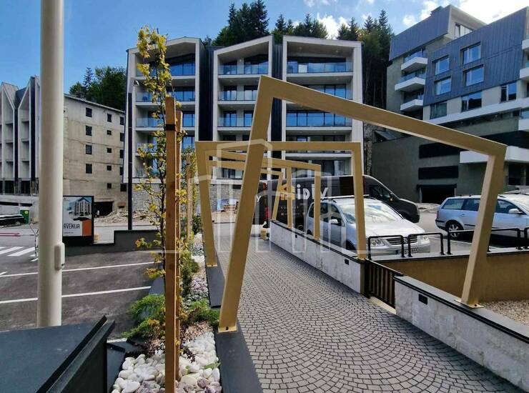 Apartman smješten na prvoj etaži stambeno-poslovnog kompleksa "WINTER PARK RESIDENCE" ukupne površine 43.60m2 čine ulazni hodnik, dnevni boravak s trpezarijom, kuhinja, kupatilo, spavaća soba i balkon.