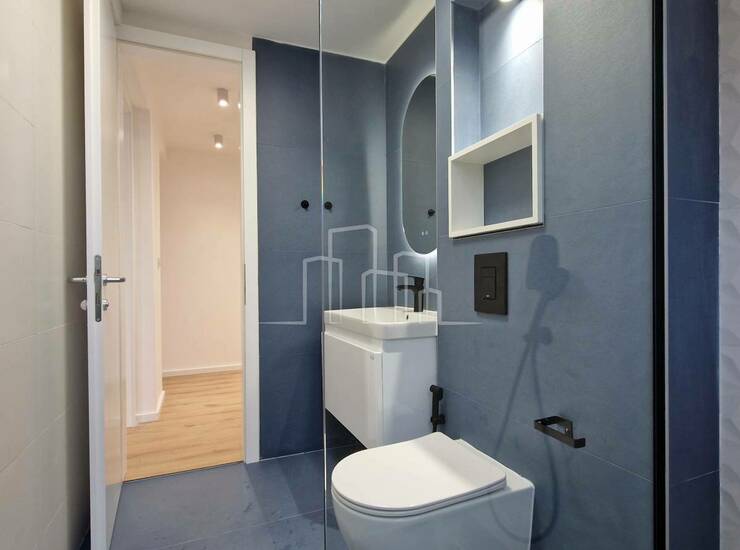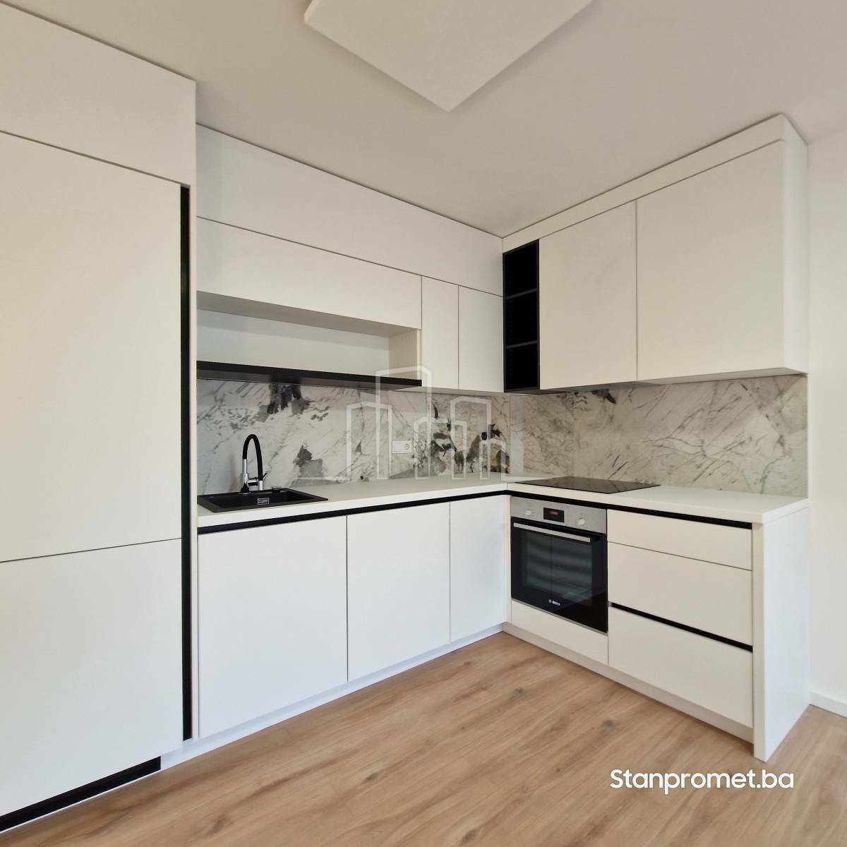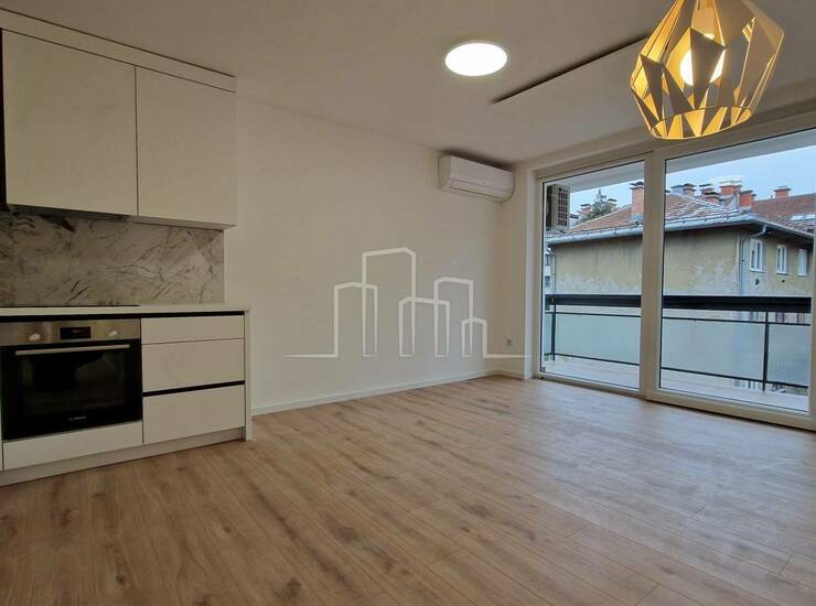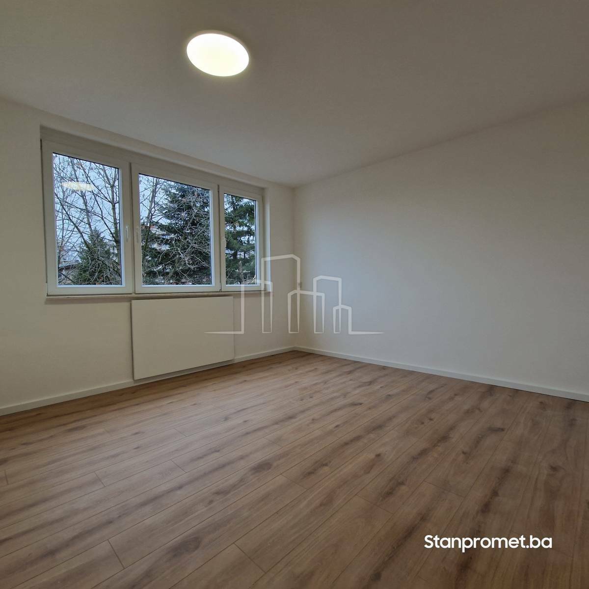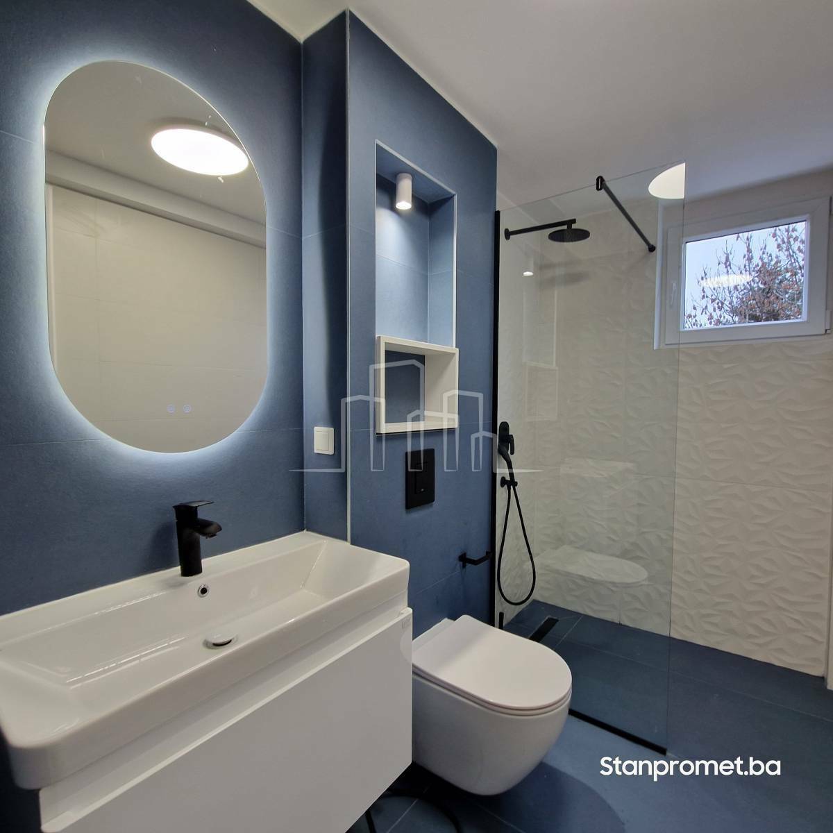 Riječ je o potpuno renoviranom stanu podijeljenom na dvije stambene jedinice. Dvosoban stan 30 m2 čine dnevni boravak sa kuhinjom, spavaća soba i kupatilo. Trosoban stan 55 m2 čine dnevni boravak sa kuhinjom i izlazom na balkon, dvije spavaće sobe i kupatilo. Nekretnina je ful renovirana od poda do plafona, postavljene su kuhinje po mjeri sa aparatima kao i plakari. Grijanje električno zonsko, djelimično podno i radijatorsko. Uknjižena površina 83 m2.